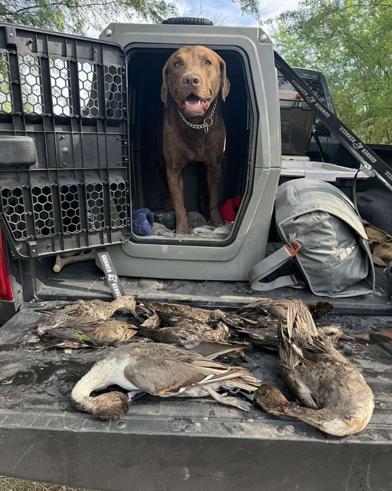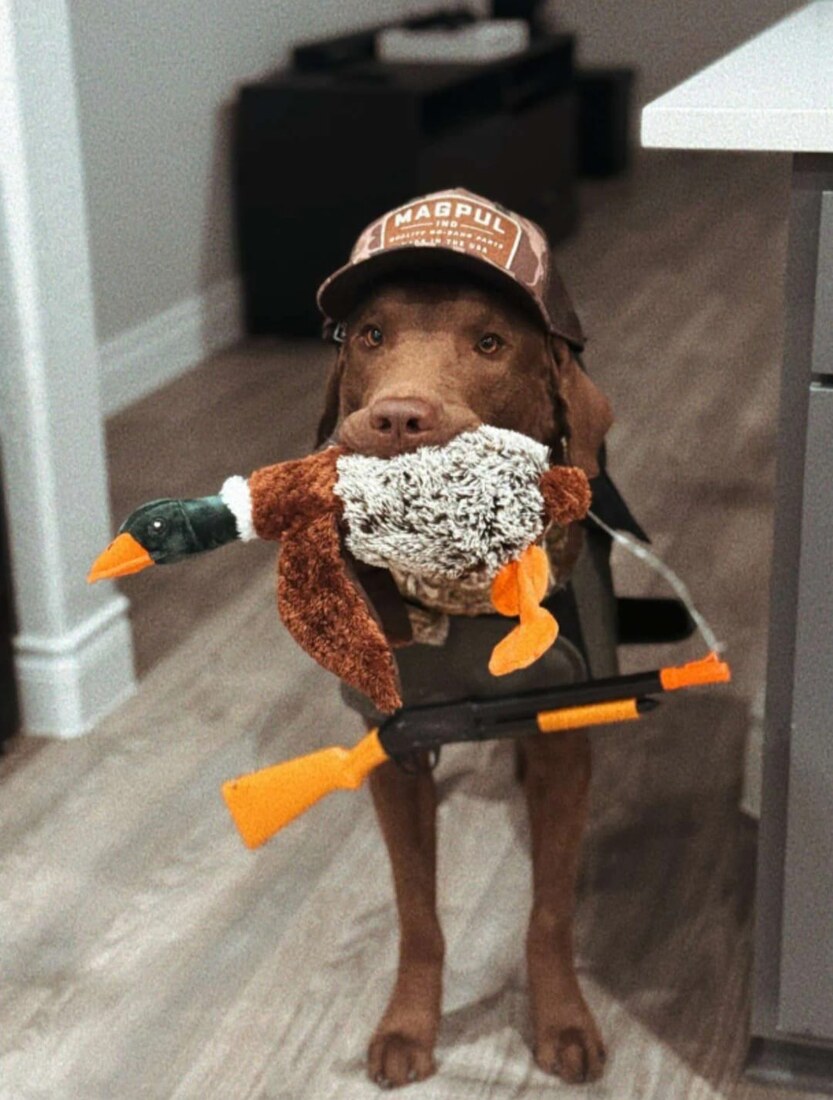 Flynn lives with his owner Luis in Texas and loves hanging out with him at home and in the office. Flynn is a natural duck hunter!