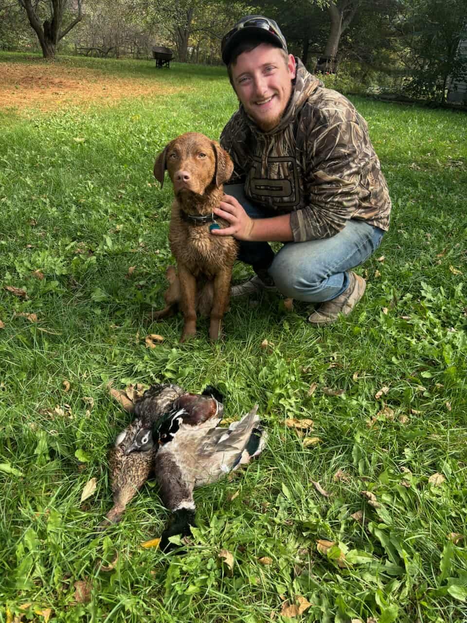 My family and I were lucky to get our second Chessie (Gus) from Lone Willow Chesapeakes in the spring of 2023. I have two young children and we are very fortunate that Gus has such an easy going personality and a great temperament. When I first researched potential kennels, Maygan was very responsive and helpful with all the questions I had and she spent a lot of time speaking with contacts of mine to make sure Gus was going to a good home. Maygan has kept in touch with my wife and I for the past year and half that we have had Gus. Gus is an incredibly smart dog, he has a strong desire to learn and training him has been a pleasure. Gus is a very driven dog with, loves to hunt and more importantly loves to be around people. I strongly recommend Lone Willow Chesapeakes for your next Chessie. Thank you Joe